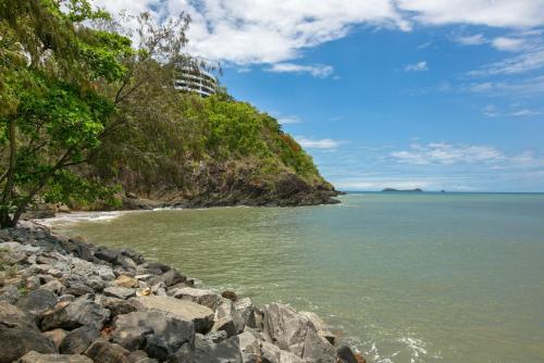 Con una terrazza che affaccia sul mare, una piscina all'aperto e un barbecue, Belle Escapes 4 Sims Esplanade Yorkeys Knob si trova a Yorkeys Knob, vicino a Spiaggia di Yorkeys Knob e a 18 km da Stazione Ferroviaria di Cairns. Questa struttura fronte spiaggia mette a disposizione un balcone e il WiFi gratuito.