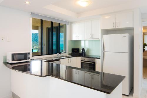All apartments at Pinnacles Resort Whitsundays include an internal spa bath or hot tub, a balcony and stunning views of the Coral Sea. The 1-bedroom apartments have a kitchenette whilst the 2 and 3-bedroom apartments have a fully equipped kitchen.