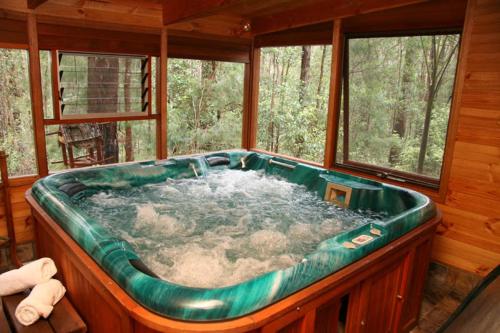 Situato in un terreno di 5,6 ettari lungo lo Springbrook Plateau, dichiarato Patrimonio dell'Umanità dall'UNESCO, lo Springbrook Mountain Chalets offre sistemazioni dotate di patio e vasca idromassaggio in camera o in bagno.