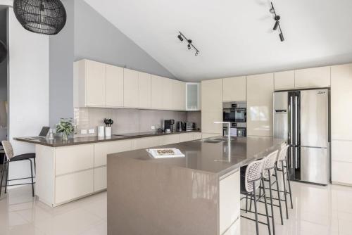 Posizionato fronte spiaggia a Soldiers Point, ad appena 1,1 km da Spiaggia della riserva di Kangaroo Point, l’alloggio Tree Tops Water Front Soldiers Point- First Floor mette a disposizione un ristorante e il WiFi gratuito. Questo appartamento presenta anche una piscina privata.