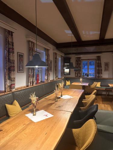 Enjoy traditional culinary delights and fine Austrian wines in the 2 cosy dining rooms and on the terraces, which offer beautiful views of the lake and the Höllengebirge mountain range.