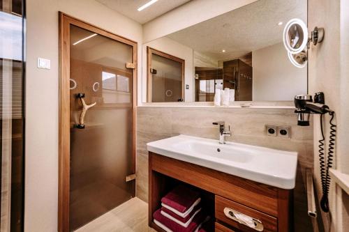 Le camere dell'Hotel Leitner dispongono di balcone con vista sulle montagne, TV satellitare a schermo piatto, pantofole e bagno privato con asciugacapelli.