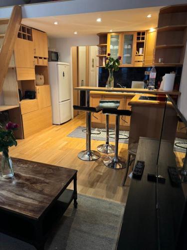 Questo appartamento presenta 1 camera da letto, un soggiorno con TV a schermo piatto, una cucina con utensili e 1 bagno con doccia e set di cortesia.