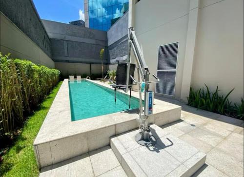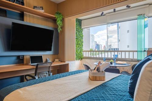 A 4,4 km da Stadio Pacaembu, Pinheiros I Faria Lima, Apto Studio, 50m Metrô, Piscina, WI-FI prevede alloggio a San Paolo con piscina all'aperto, WiFi gratuito e reception aperta 24 ore su 24. La struttura presenta la vista sulla città e sul giardino, e si trova a 4,7 km da Museu de Arte de São Paulo.