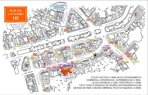 Flat 313 si trova in zona Petropolis Historic Center a Petrópolis, a 800 metri da Cattedrale di San Pietro d'Alcantara, 6,6 km da Rampa per il Volo Libero di Simeria e 7,2 km da Stazione Autobus di Petropolis. La struttura presenta la vista sul giardino e il WiFi gratuito in tutta la struttura.