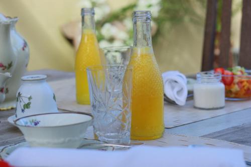 La colazione, servita ogni mattina nel giardino della Villa Balthazar, comprende frutta fresca, pane, salumi e un assortimento di bevande calde e fredde.