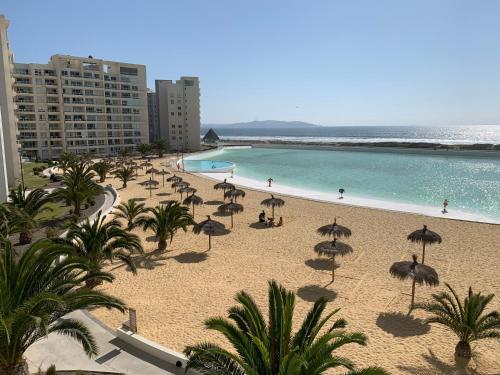 DEPARTAMENTO EN RESORT LAGUNA DEL MAR propone un alloggio con piscina all’aperto, centro fitness e giardino a La Serena e dispone di WiFi gratuito e vista sulla città. Questa struttura fronte spiaggia offre una sala comune, una terrazza e attrezzature per sport acquatici.