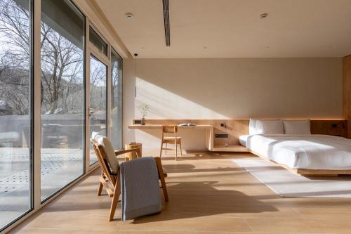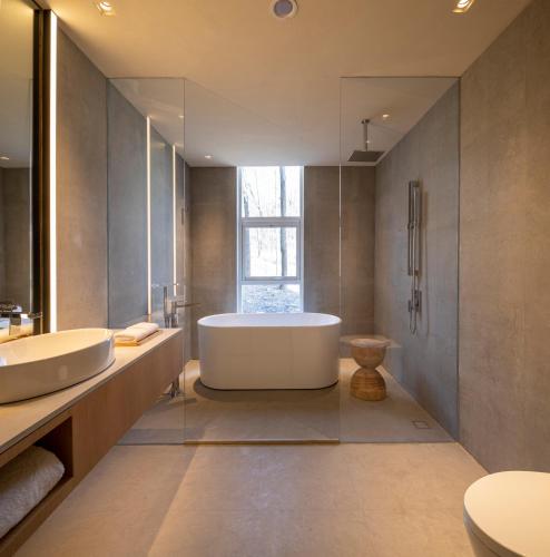 The hotel has 176 rooms and suites spread across 36 villas, including Cantilever House, Bamboo Wall, Shared House, Forest House, and a collection of resort-inspired villas where most rooms feature a private terrace. Each villa has its own unique design theme, from the Japanese-inspired Bamboo Wall, which offers five bedrooms and a tea room, to Forest House, a cozy six-bedroom hideaway designed to reflect the woods that surround it outside. Guests can enjoy mountain views from every room and access to the villas’ shared living spaces. An entire villa can also be booked for the ultimate private retreat with family or friends.