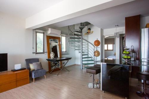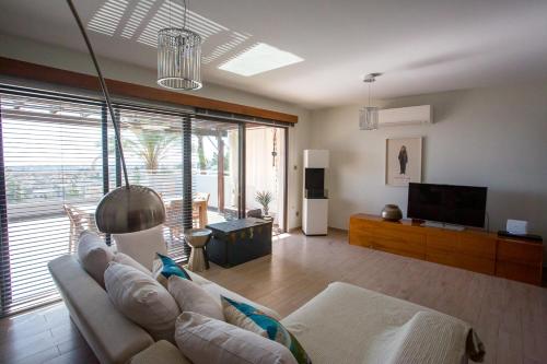 Con vista sul mare, Penthouse Duplex overlooking the Mediterranean propone un alloggio dotato di terrazza e balcone, a circa 9,4 km da Piazza Europa. Questo appartamento mette a disposizione un alloggio con patio e WiFi gratuito.