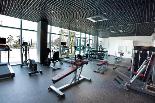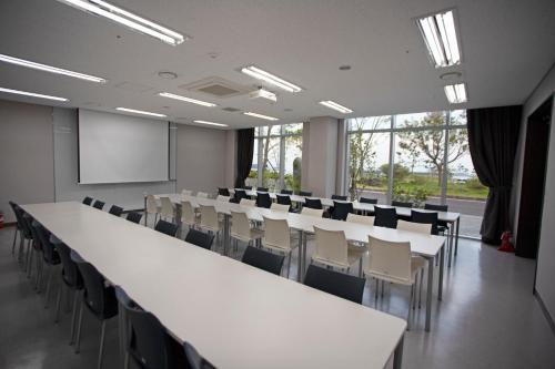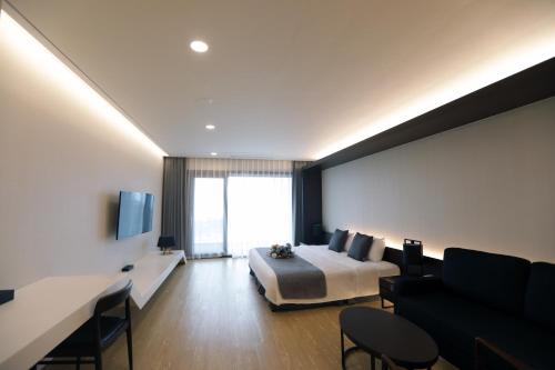 Questo resort offre agli ospiti camere climatizzate con una scrivania, un bollitore elettrico, un frigorifero, un minibar e una cassaforte. Non manca poi la TV a schermo piatto, una terrazza e il bagno privato con bidet. The Qube Resort Jeju propone alcune camere con vista sulla città e ogni camera è dotata di un balcone. Tutte le camere hanno un armadio.