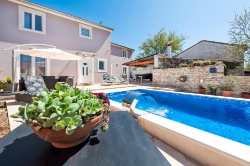 Villa Nina Zminj, Istrien, una struttura con piscina all’aperto stagionale e terrazza, si trova a a Žminj a 20 km da Cattedrale di Sant’Eufemia, 38 km da Arena di Pola e 45 km da Aquapark Istralandia. Questa villa presenta piscina privata, giardino, barbecue, WiFi gratuito e parcheggio privato gratuito.
