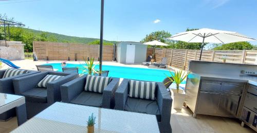 Ubicato a KoruÅ¡ce, a soltanto 26 km da Rovine di Salona, l’alloggio Holiday house Villa Bleu propone una piscina all'aperto, una terrazza e il WiFi gratuito. Questa villa offre piscina privata, giardino e parcheggio privato gratuito.