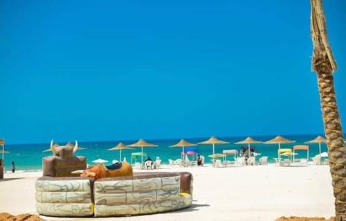 شقه فندقيه فاخرة بقرية سياحية متكاملة الخدمات شاطيء رملي وحمامات سباحة واكوابارك على بعد دقائق من مطروح