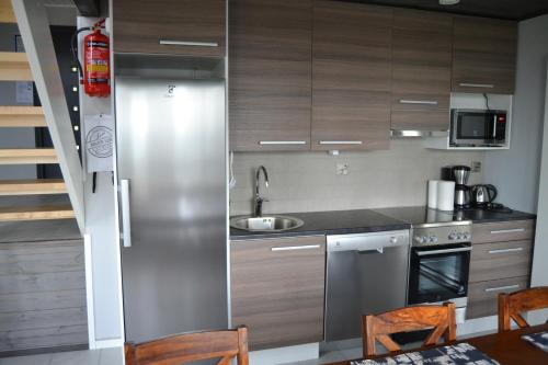 The holiday home with a balcony and lake views has 3 bedrooms, a living room, a flat-screen TV, an equipped kitchen with a dishwasher and an oven, and 2 bathrooms with a shower. For added convenience, the property can provide towels and linens for a supplement. The accommodation offers a fireplace.