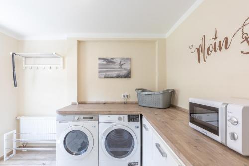Questa casa vacanze ha 2 camere da letto, una TV e una cucina con utensili, frigorifero, lavastoviglie, lavatrice, forno e microonde.