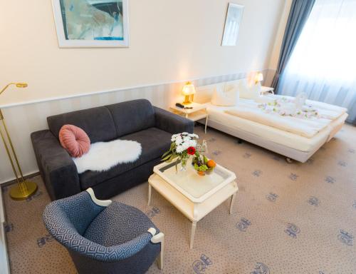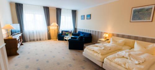 Tutte le sistemazioni dell'Erbprinz presentano interni con combinazioni di colori soft, una TV con canali via cavo e un bagno privato con doccia.