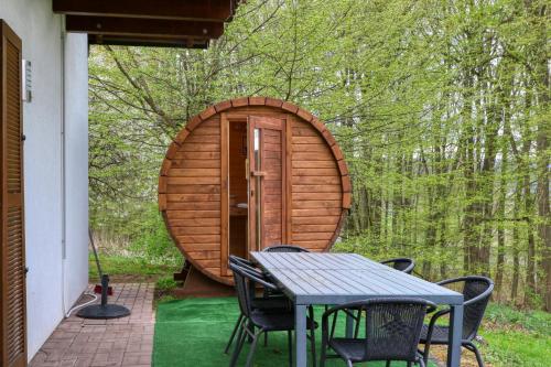 Seepark Kirchheim Ferienhaus bei Zeta mit Sauna prevede un alloggio con giardino, sala comune e terrazza a Kirchheim e dispone di WiFi gratuito e vista sul giardino. Questa struttura mette a disposizione un balcone e il parcheggio privato gratuito.
