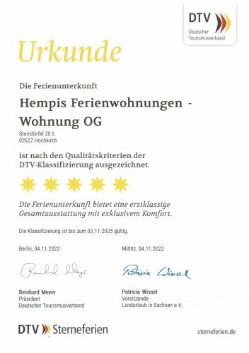Hempis Ferienwohnungen Steindörfel 20b, Hochkirch 92 100 14 Totale 92% Da 100%