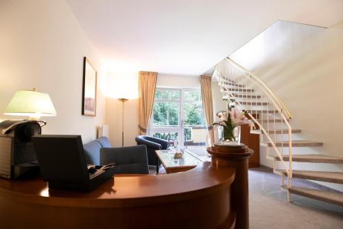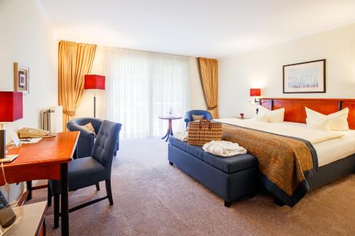 Questo hotel a 4 stelle superior gode di una posizione idilliaca e naturale sul lago Inselsee, a sud di Güstrow, e si fonde armoniosamente con la natura circostante. Come ospiti del Kurhaus am Inselsee potrete usufruire gratuitamente della connessione Wi-Fi.