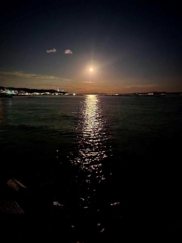 Questa casa vacanze ha 2 camere da letto, 1 bagno, lenzuola, asciugamani, una TV a schermo piatto, una zona pranzo, una cucina con utensili e una terrazza con vista sul mare.