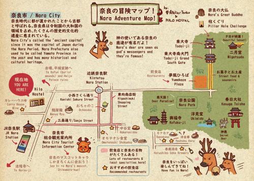 Hilo Hostel è situato a Nara, a 900 metri da Stazione di Nara e 18 km da Iwafune Shrine. Con una sala comune, l'ostello a 3 stelle presenta camere climatizzate con WiFi gratuito e bagno in comune. La struttura prevede cucina in comune e deposito bagagli per gli ospiti.