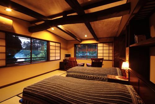 Presso questo ryokan, ogni camera include un armadio. Provviste di bagno privato con bidet e set di cortesia, le camere presso Taikyourou hanno la TV a schermo piatto e l’aria condizionata. Alcune camere comprendono un balcone. Presso questa struttura, tutte le camere prevedono lenzuola e asciugamani.