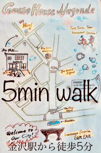 La Guesthouse Nagonde dista 400 metri dal centro commerciale Kanazawa FORUS e 2,4 km dal Tempio di Myoryuji - Ninja.