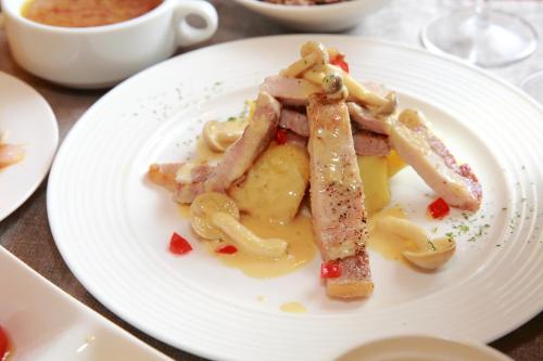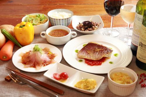 Potrete gustare piatti fatti in casa preparati con ingredienti freschi locali nella zona pranzo. Al mattino vi attende una colazione tipica giapponese a base di pesce alla griglia, riso e zuppa di miso.