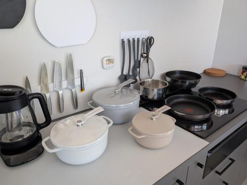 Questa villa con aria condizionata comprende 2 camere da letto, un soggiorno, una cucina con utensili, frigorifero e bollitore elettrico, e 1 bagno con bidet e doccia.