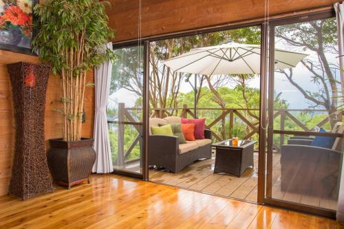 ダイナミックオーシャンビューを堪能できる自然の中のログハウス