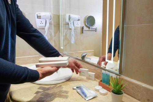 Il Toledo Hotel, premiato con un marchio di qualità ecologica internazionale, vanta camere con vista sulla Moschea Blu di Re Abdullah, una piscina coperta, un centro benessere e una moderna palestra. Dista 20 minuti a piedi dal centro di Amman.