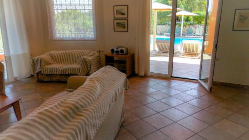 Questa villa con aria condizionata comprende 3 camere da letto, un soggiorno, una cucina con utensili, frigorifero e macchina da caffè, e 4 bagni con doccia e asciugacapelli. Presso questa villa troverete asciugamani e lenzuola tra i servizi disponibili.
