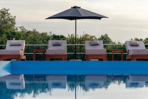 Villa Erato propone una piscina, un giardino, una terrazza e la vista sul mare nella città di Tsoukalades. Tutti gli alloggi hanno il WiFi gratuito.