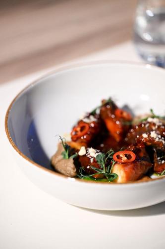 Il premiato ristorante alla carta Crazy Cow propone piatti della cucina mediterranea a base di prodotti biologici locali.