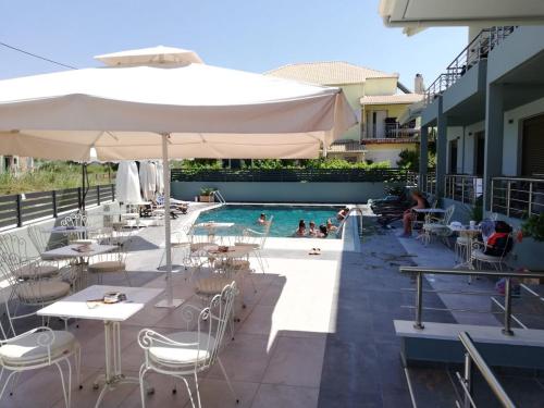 Sunset si trova a Plataria e prevede la vista sulla montagna, una piscina all'aperto, una sala comune, una terrazza, un ristorante e un bar. Il WiFi gratuito è in dotazione in tutta la struttura.