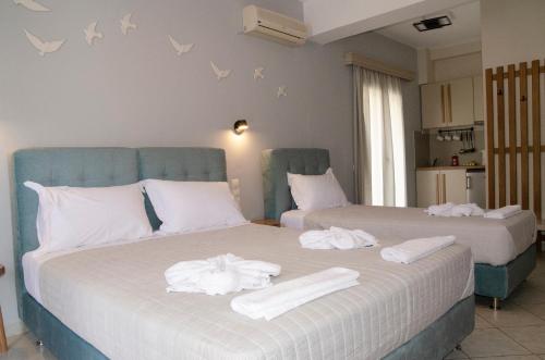 Le camere presso questo affittacamere dispongono di una TV a schermo piatto e la cassaforte. Tutte con bagno privato che include una doccia e l'asciugacapelli, certe unità presso Aliki Studios comprendono anche un balcone. Le camere presentano un frigorifero.