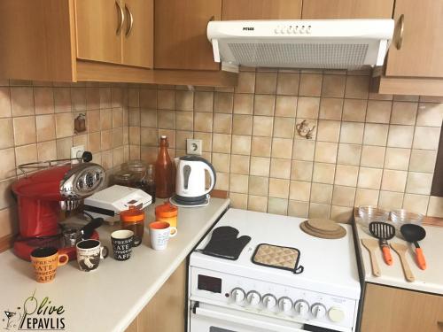 Olive Epavlis prevede un alloggio con giardino, sala comune e terrazza a Karpathos e dispone di WiFi gratuito e vista sulla città. Questo appartamento propone un parcheggio privato gratuito e una cucina in comune.