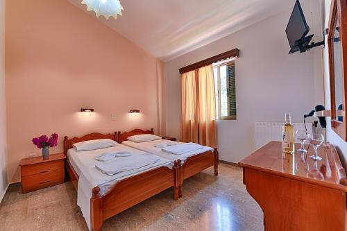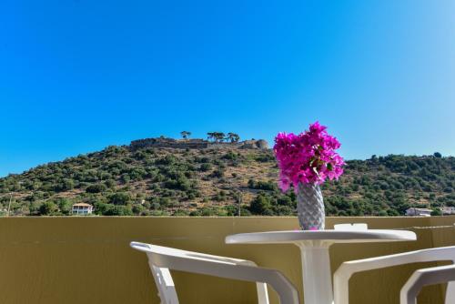 Immerso nella vegetazione lussureggiante all'interno del villaggio di Peratata, lo Ionis Hotel offre una piscina e uno snack bar. Le sue sistemazioni godono del WiFi gratuito e comprendono un balcone arredato con vista sul castello di Agios Georgios, il giardino o la piscina.