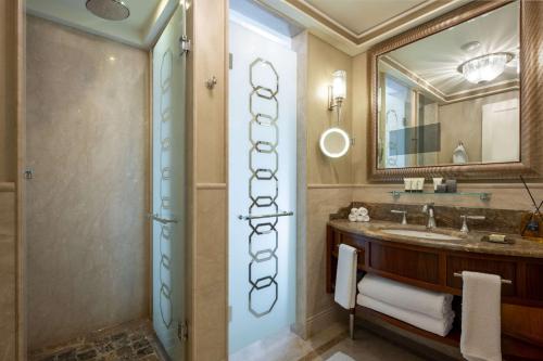 The 226 rooms and suites are sumptuously decorated with brightly designed with arched windows and chandeliers overhead. Each room is equipped with the finest amenities and technical equipment. Customized Serta mattress and luxury linen with an option of King or Twin sized beds. The Italian marble bathrooms features separate bathtub and a sit-down shower stall, Mirror embedded TV, exclusive bath amenities and plush cotton robes.