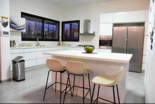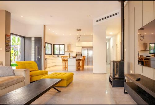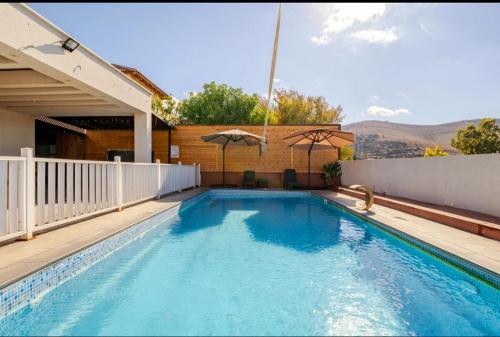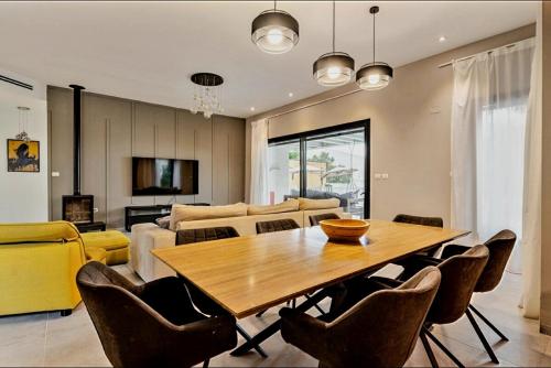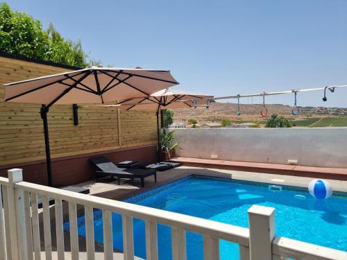 לב הגלבוע propone un alloggio con piscina all’aperto, giardino e attrezzature per sport acquatici a Nurit e dispone di WiFi gratuito e vista sulla montagna. Questa villa mette a disposizione un alloggio climatizzato con balcone.