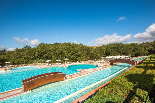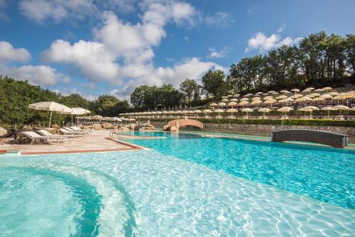 Le piscine all'aperto seguono il percorso delle acque naturali, una delle quali vanta acqua salata. Il bar La Capannina si trova accanto alla piscina.
