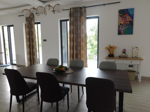 Questa villa presenta 4 camere da letto, 4 bagni, lenzuola, asciugamani, una TV a schermo piatto, una zona pranzo, una cucina con utensili e una terrazza con vista sul giardino.