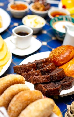 Il ristorante del Riad L'orange Bleue propone piatti della cucina tradizionale, da assaporare sulla terrazza o nella sala ristorazione con caminetto. A vostra disposizione anche un menù per particolari regimi dietetici su richiesta e una colazione continentale giornaliera.