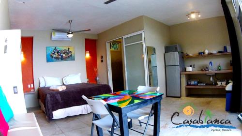 Situato a Zipolite, a 10 metri da Playa Camarón, Casablanca Guest House - Adults Only - Starlink Internet! prevede una piscina all'aperto, un parcheggio privato gratuito, un giardino e una zona spiaggia privata. Tra i servizi di questa struttura c’è una cucina in comune e una sala comune, oltre al WiFi gratuito in tutta la struttura. L'affittacamere mette a disposizione la vista sul mare e una terrazza.