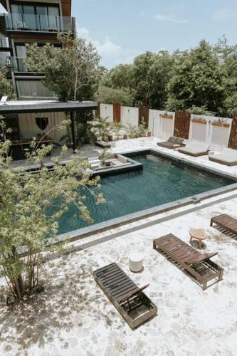A 10 km da Sito archeologico di Tulum, 4,2 km da Parque Nacional Tulum e 5,9 km da Autostazione, Cute Boho Penthouse 2 BR Apt è un alloggio situato a Tulum. Questa struttura offre una piscina privata, il WiFi gratuito e il parcheggio privato gratuito.