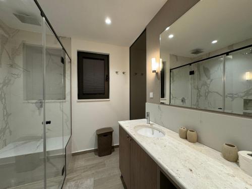 Questa villa presenta 4 camere da letto, 4 bagni, lenzuola, asciugamani, una TV a schermo piatto con canali via cavo, una zona pranzo, una cucina con utensili e una terrazza con vista sul mare.