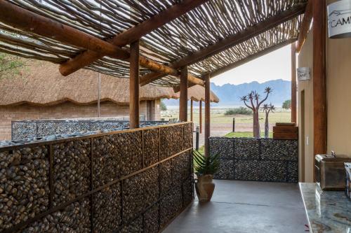 Le sistemazioni del Desert Camp vantano un ingresso indipendente, un angolo cottura con bollitore elettrico e frigorifero, e prese di corrente per asciugacapelli e rasoi. Tutti gli alloggi sono arredati con i colori del deserto del Namib.