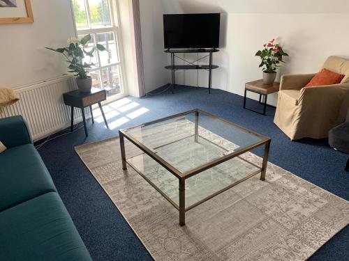 Questo appartamento con 1 camera da letto ha un soggiorno con TV a schermo piatto e un angolo cottura.