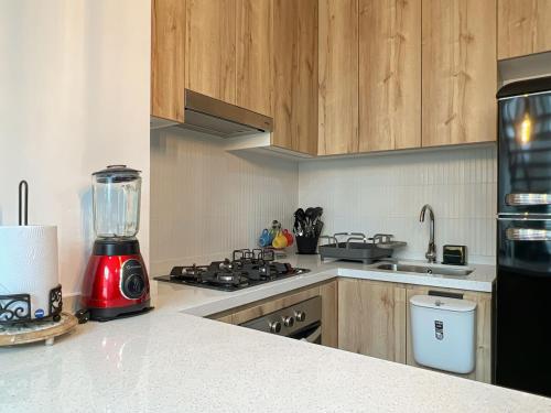 Questo appartamento presenta 1 camera da letto, una TV a schermo piatto e una cucina.