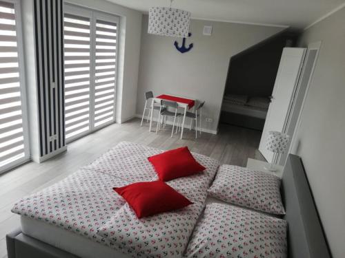 MARKAS si trova a Rewa, nella regione Pomorskie, a 500 metri da Spiaggia di Rewa. Mette a disposizione il WiFi gratuito, attrezzature da barbecue, un giardino e un parcheggio privato gratuito.